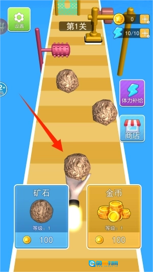 3、行进途中会随机出现打磨工具,获取后可让背包内的矿石自动提升纯度等级。