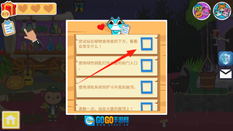 3、查看任务列表,按照提示完成“站在植物食用者下方”等任务,点击方框来标记任务的完成进度。