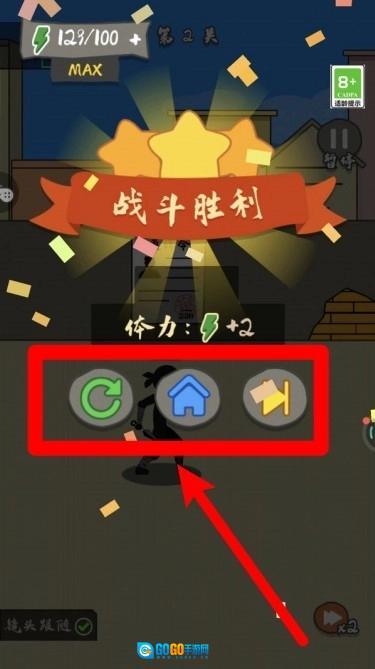 2.战斗胜利后会出现选项界面,在这里你可以选择重玩当前关卡、返回主界面或是进入下一关,各项操作清晰明了,能帮助你快速继续游戏进程。