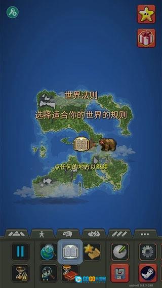 3、世界法则按钮:可对重力、气候、生态循环等核心规则进行调整,以此来定义世界的运行逻辑;