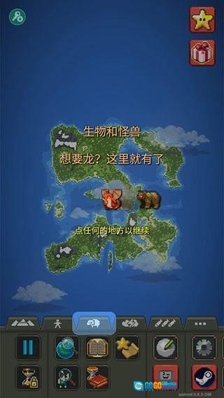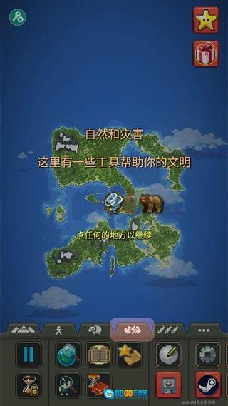 1.生成:创造出绵羊、狼、兽人、精灵、矮人、龙、僵尸等各类魔法生物!甚至连UFO都能生成! 2. 文明:不同文明能够建造房屋、铺设道路,还会彼此发起战争。你可以帮助它们存活下去、不断进化,进而建立起强大的文明!