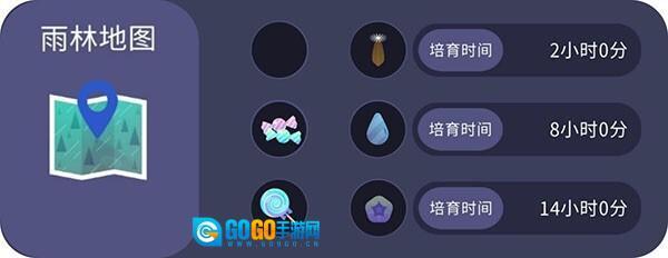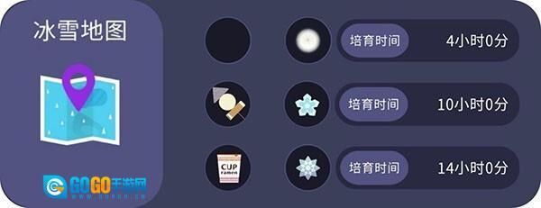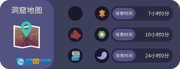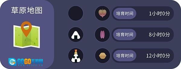 地图、零食(黑色图标表示无)、这种搭配所带回的种子(为何不加上名字呢!)、该种子的培育时长
