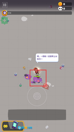 进入游戏后,借助左侧的虚拟摇杆操控角色移动,在地图里探索并拾取场景中散落的武器,以此武装自己来应对僵尸。
