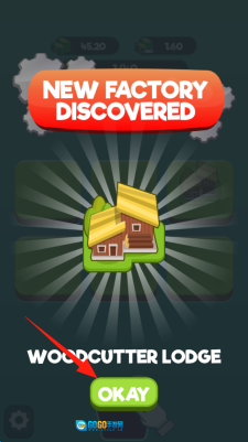 2、发现新工厂Woodcutter-Lodge时,点击OKAY确认,解锁新建筑类型,点击确认。