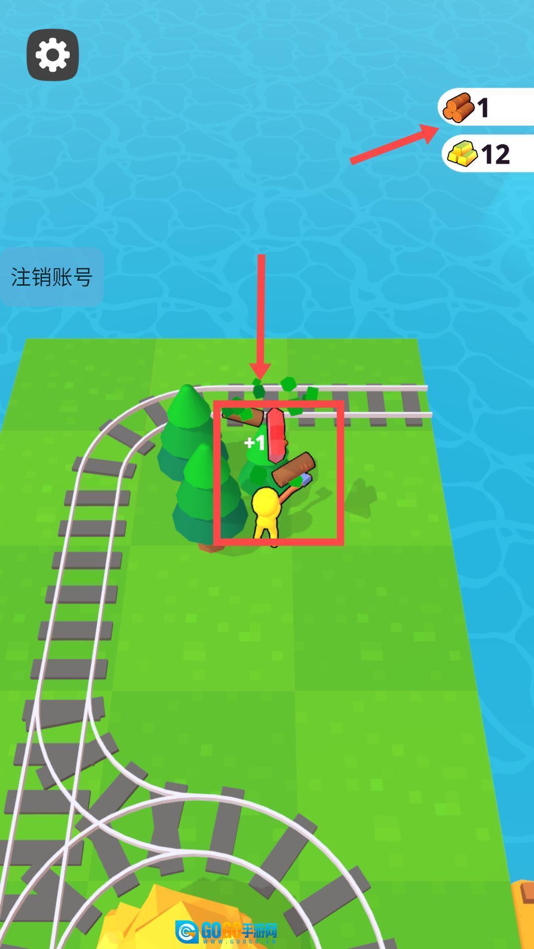 2、指引小人进行树木砍伐以获取木材资源,留意右上角的资源数量变动情况,科学规划采集路线,从而提高采集效率。