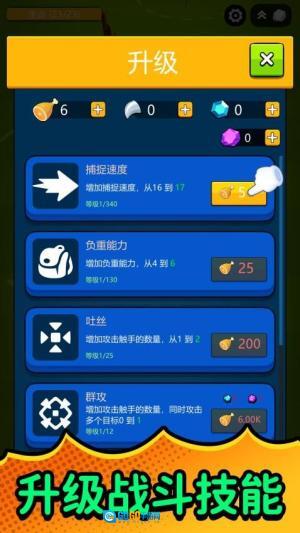 3、碰到难对付的目标时,可以先用蜘蛛网把它束缚住再发起攻击,另外别忘了用捕获的人类去换取食物。