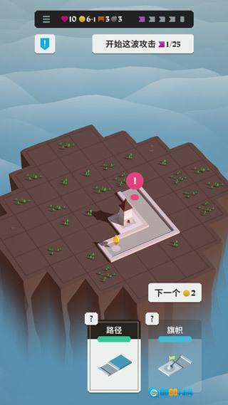 2、塔楼具备攻击入侵者的能力;道路设定了敌人行进的路线;旗帜可实现岛屿的延展,为你提供更广阔的空间。