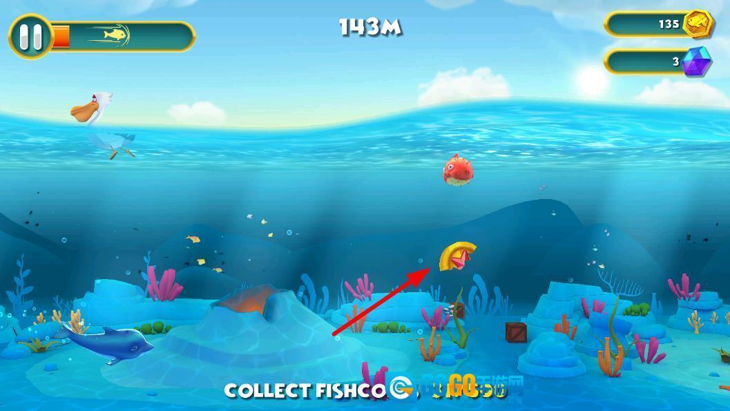 2、游动时注意观察食物的分布情况,灵活转变方向以避开迎面袭来的天敌,同时收集食物,为解锁新伙伴储备所需资源。