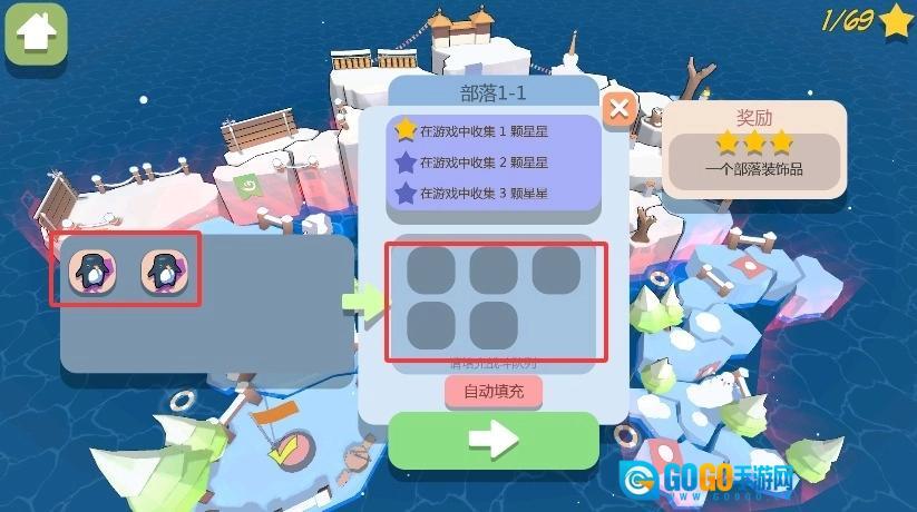 玩家可以通过完成关卡解锁不同的部落,点击主界面的“钓鱼”功能能够获取鲑鱼资源,而“帽子争夺”玩法则让企鹅们互动抢戴装饰,以此增强游戏的趣味性和探索欲。