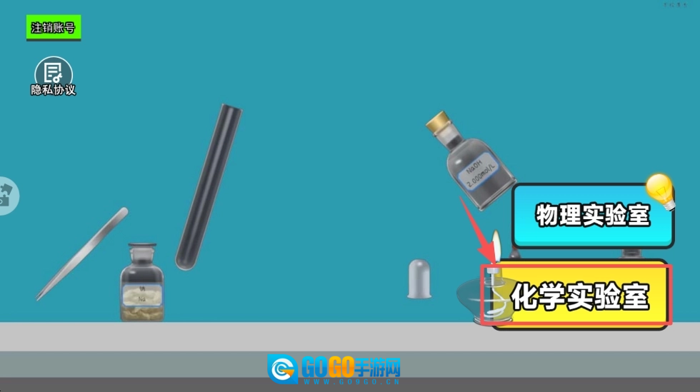 2、可根据个人兴趣,选择“化学实验室”或“物理实验室”,进入对应的实验环境。