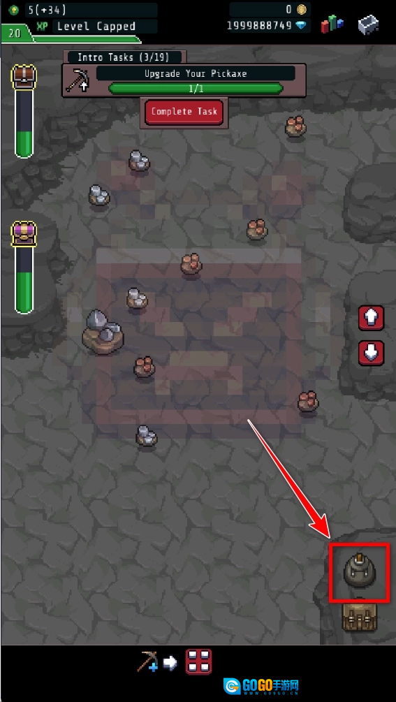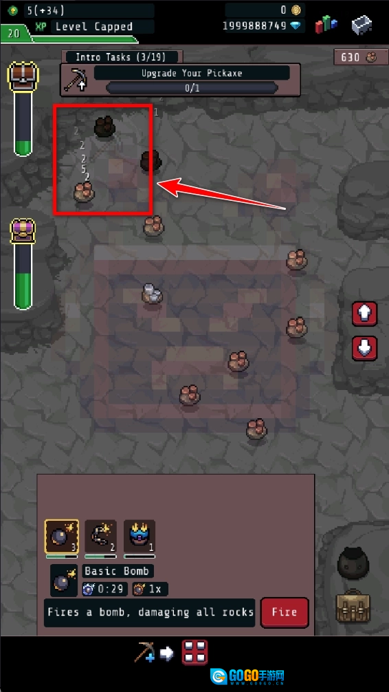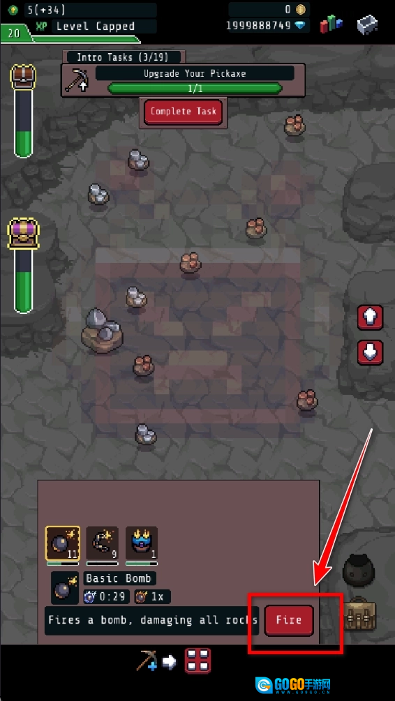 任选一个炸弹,点击这个按键,就可以炸掉矿物。