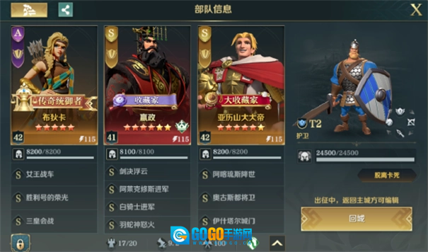 灼烧队的核心角色是关羽,他的搭配为车挂阵与布拉克山漩涡射击;织田信长的组合是战争之王加银杏树之火;亚历山大则采用西班牙方阵和焦土战役的搭配。