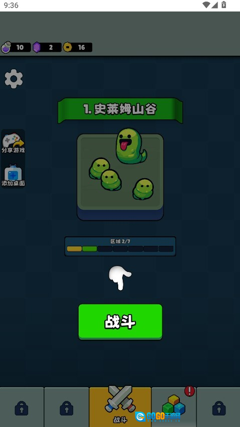 1、进入永不言弃的大师,点击【战斗】开始冒险