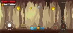 2、玩家需要操控角色在持续坍塌的隧道里不断前进,隧道上方分布着黄金、石块之类的物品。