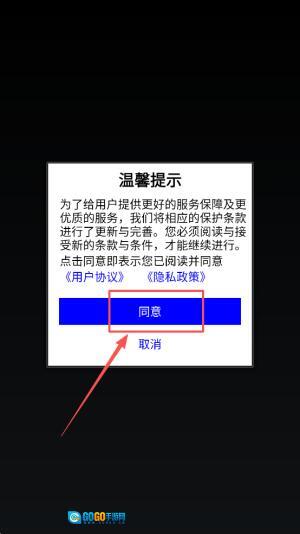 1、阅读条款:在温馨提示界面点击同意。
