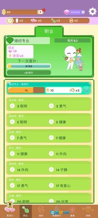 4、留意职业晋升的进展情况,当缝纫专业达到特定等级时,可依据属性值解锁收益更高的职业,比如在满足面包师的晋升条件后,要及时完成晋升操作,以此提高每秒的赚钱效率。