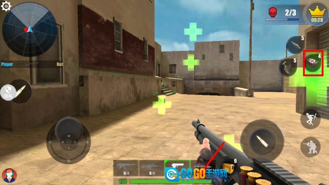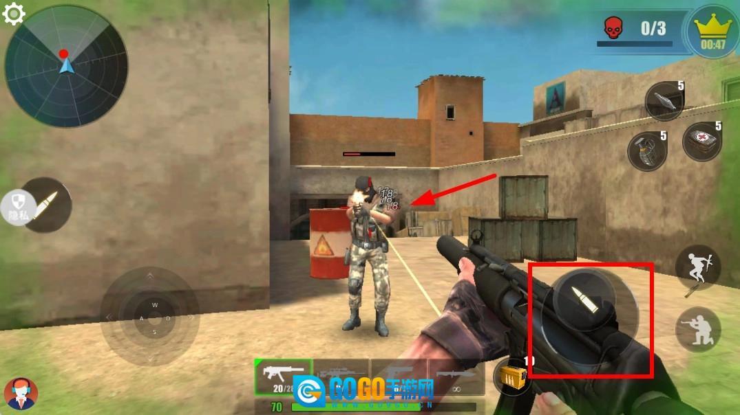 3、发现敌人后,对准敌人并点击右侧的攻击按钮,角色就会用枪械射击敌人,同时要注意自己的弹药剩余量,以保证能够持续战斗。
