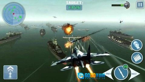 1.增添了丰富的画面设定与趣味十足的场景制作。 2. 设计了多种不同类型的战斗机,并且包含大量军事轰炸任务。