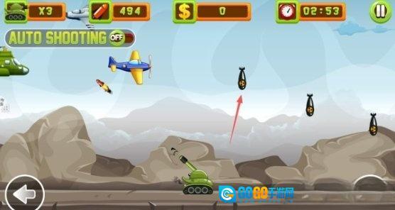1.我们通过点击左右两侧的按钮来操控坦克移动,之后点击屏幕就能进行射击操作。