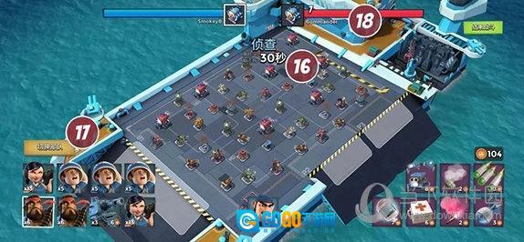 2、当屏幕上出现对手的战斗母舰后,⑯对战计时器便会启动倒计时。在倒计时期间,您仍能点击⑰切换部队按钮,调整出战部队的阵容。不过要抓紧时间,倒计时很快就会结束哦!
