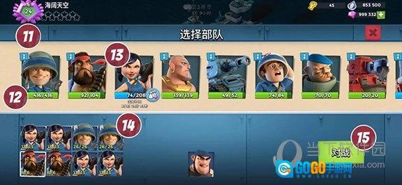3、⑪彩色部队头像代表可选择的部队。