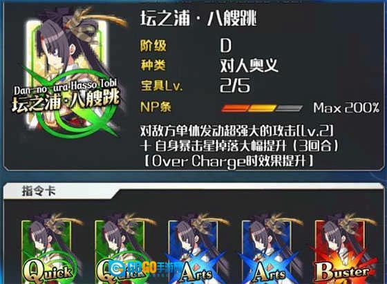 二技能C+等级可提升全体攻击力 基本思路:两蓝两绿的配卡搭配绿卡宝具,契合绿卡队的定位;另一种思路是将牛若丸视作同星阶内的单体强力输出,同时凭借一技能与二技能有效辅助己方全体,配合队友英灵输出。在绿卡队中,牛若丸也能作为打星或暴击输出从者使用(不过打星能力稍弱于美杜莎)。但相比之下,高伤害的单体宝具是其更突出的特点,在三星从者中属于相当优秀的存在。