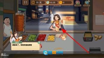 1、玩家进入游戏后,根据提示点击烤肉大叔,打开投料盒备好食材,由此开启烤肉制作的第一步,正式踏上美食制作之旅。