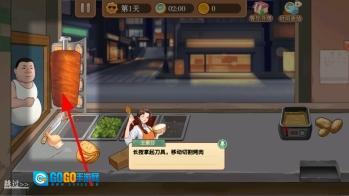 2、肉烤好后,进行切割烤肉到和蔬菜蘸酱点击放置配料盒,之后油炸土豆,为开启店铺,售卖做好充足的准备工作。