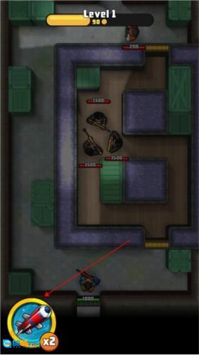 5、进入下一关,点击左下角的火箭直接命中敌人;