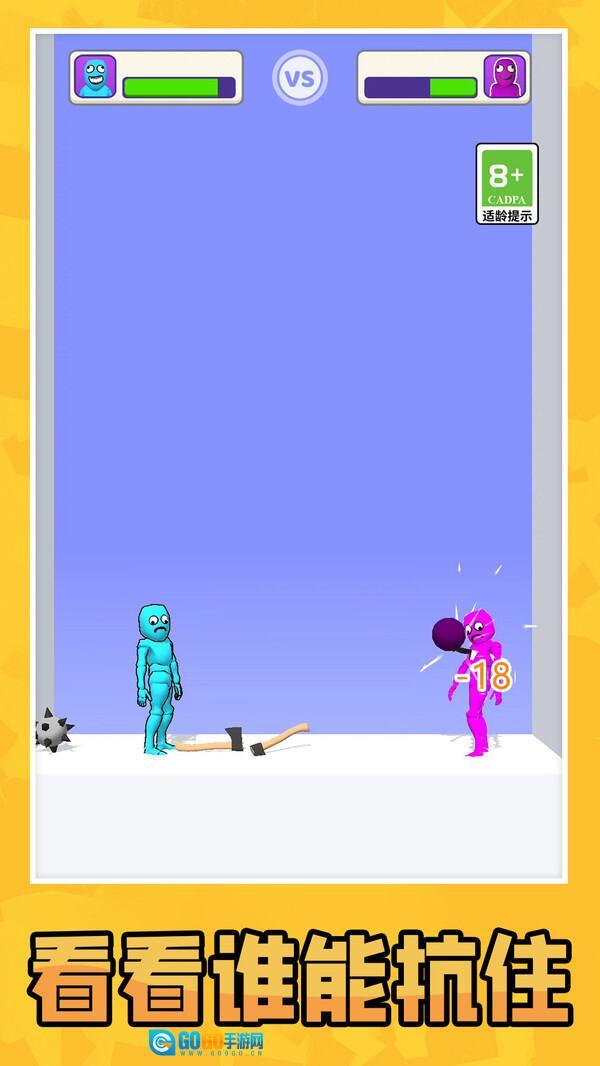 2、简约趣味格斗,简单易上手的操作,诙谐逗趣的角色动作,营造欢乐竞技氛围;