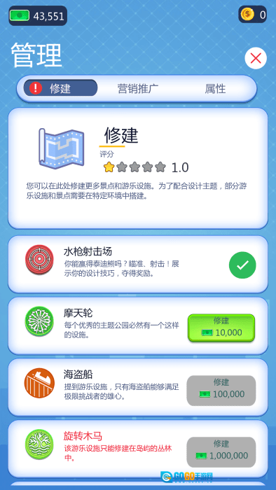 你可以增加你的娱乐设施,提高游乐场的可玩性。