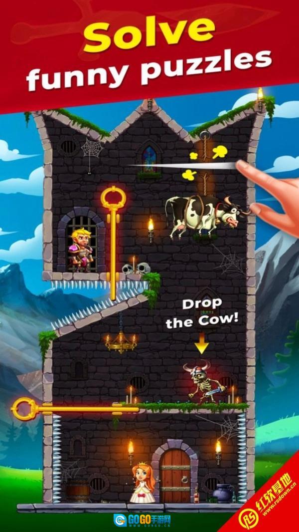 结合画面里的具体情形,稍微思考一下,做出合适的操作,就能顺利通关了。