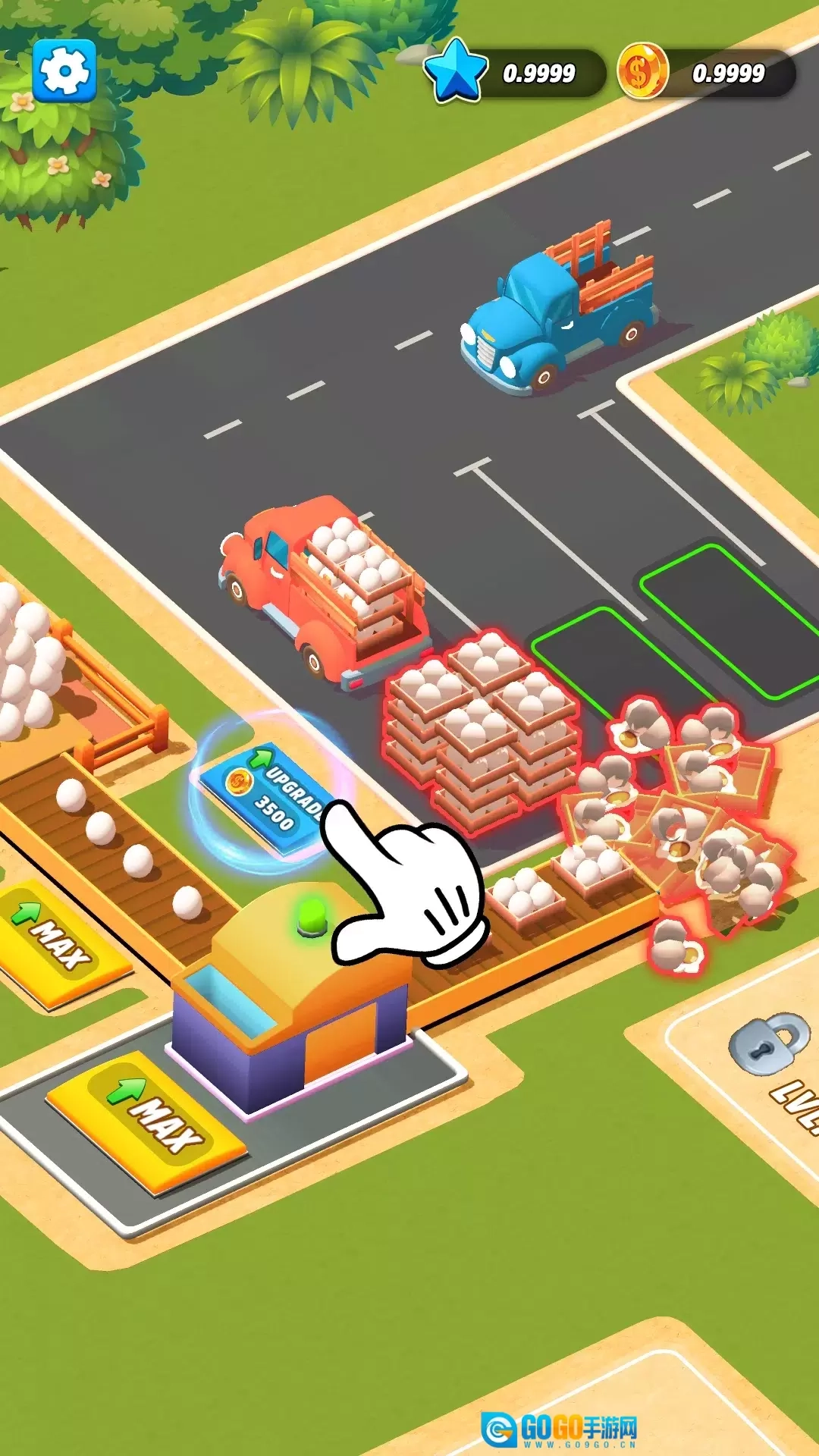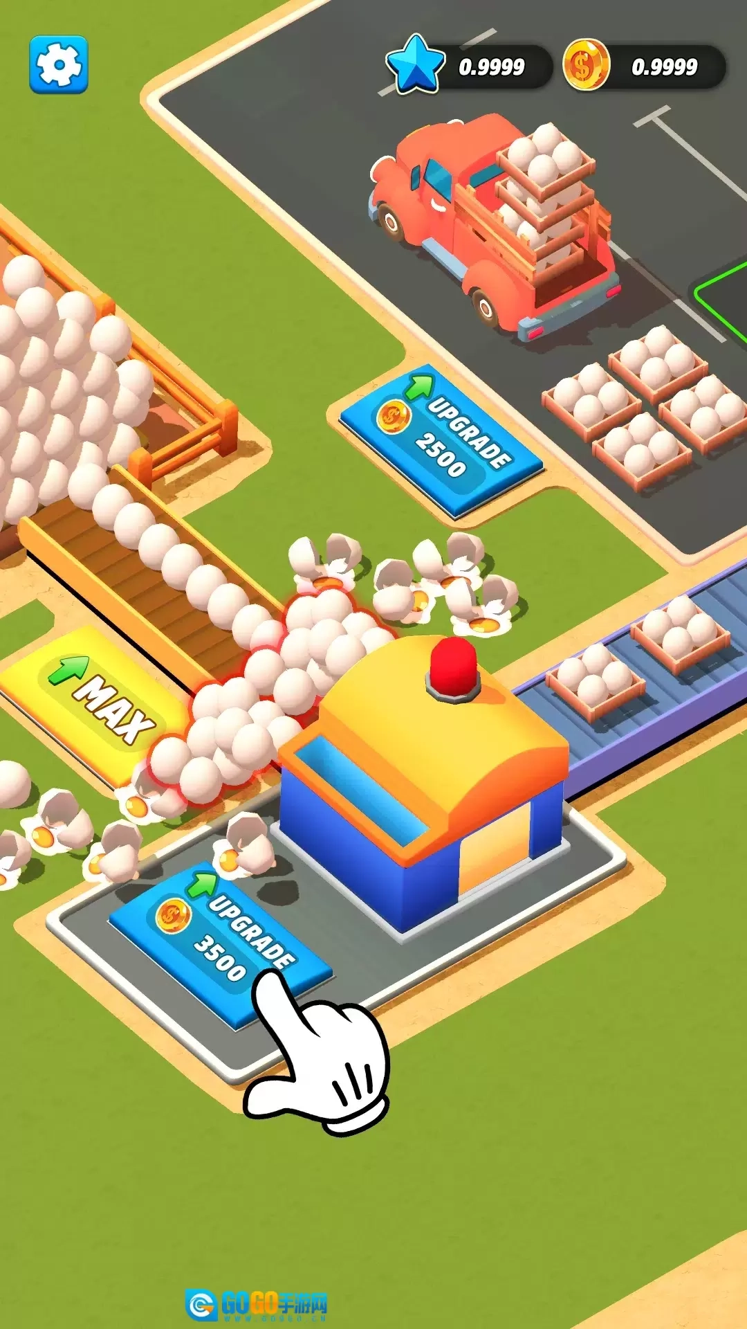通过销售产品获取金币,以此扩大农场规模并提高设备等级;
