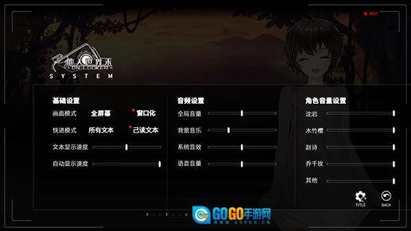 8、点击【CONFIG】按钮可进入游戏的全局设置界面,该界面包含基础设置、音频设置以及角色音量调节等选项。
