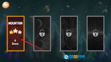 2、在关卡选择界面中,点击MOUNTAIN关卡,即可进入太空岩石场景,为弹射挑战做准备,然后点击选择关卡。