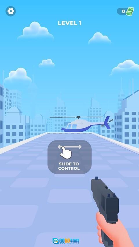 2、进入游戏如图,游戏采用竖屏滑动射击闯关玩法;