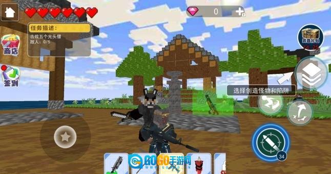 2、玩家可以先领取钻石奖励,再购买战斗所需的武器,之后进入关卡自定义挑战对战角色。