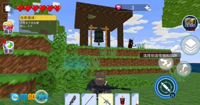 1、游戏采用沙盒风格的画面设计来打造闯关挑战,让玩家体验充满探索与对战元素的闯关过程;