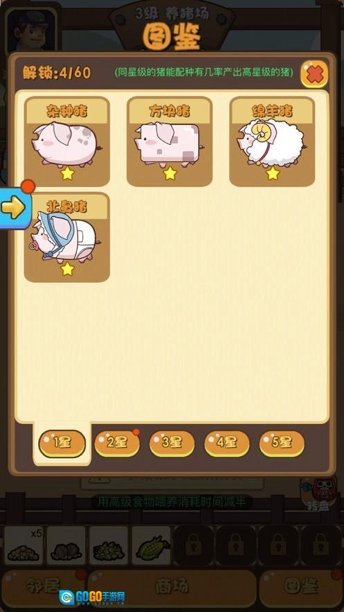1、玩家能够购买最常见的猪,并且可以通过培育让这些猪成长起来。