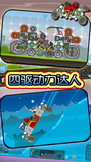 《四驱动力达人》是一款极具创意的汽车建造类游戏,玩家将踏入疯狂的太空赛车世界,在遥远行星的山丘间展开冒险。在这里,你可以自由组装专属漫游车——从车轮的选择到动力模块的搭配,每一处细节都能定制出独一无二的赛车。驾驶它驰骋在多样地形之上,翻越连绵山丘、穿越险峻峡谷,挑战丰富的关卡模式与无尽竞速玩法。通过精准操控赛车,收集散落在行星上的金币,解锁全新部件与赛车款式。在这场狂热的竞速之旅中,你将完整体验从亲手建造赛车到闯关冲刺的乐趣,向着终点全力进发。