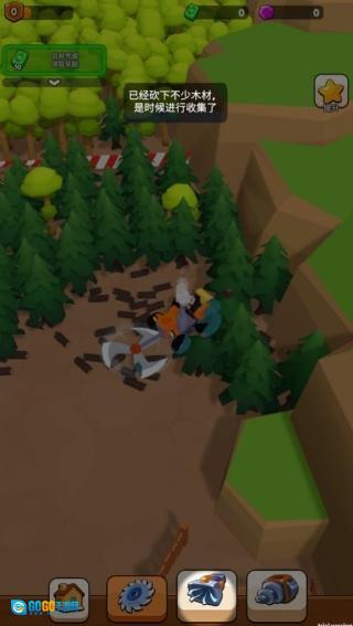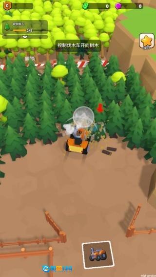 1、操作伐木设备前往林区,砍伐树木并收集木材资源,为后续的生产运营储备基础原料。