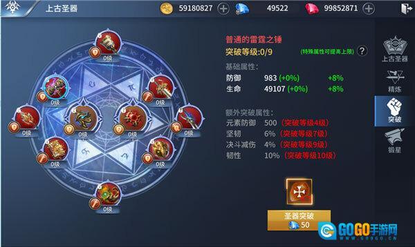 3、突破:玩家消耗特定资源可使圣器突破原有极限,进而实现战力的显著提升。