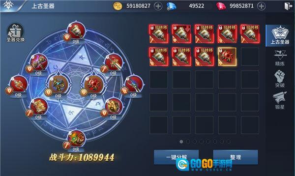 1、上古圣器:玩家可在此处开展圣器装备、属性转移等相关操作。