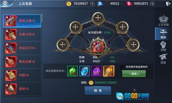 2、精炼:通过精炼操作能够提升圣器的精炼等级,进而增强其属性,使圣器变得更加强力。
