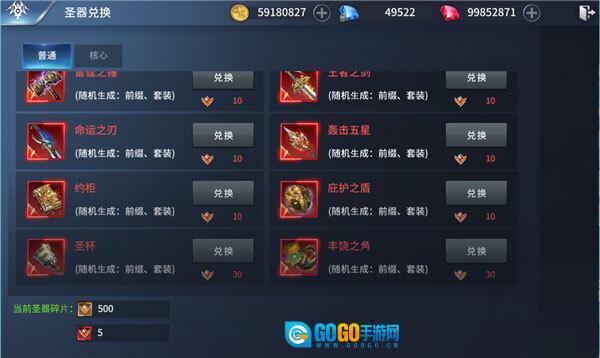 5、兑换:玩家可分解闲置的圣器,用所得的圣器碎片换取心仪的圣器。