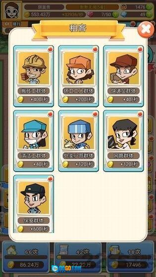 1、这款卡通风格的商务旅行模拟游戏中,玩家能够持续解锁各类房地产项目,通过吸引更多租户来获取收益。