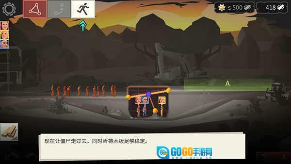 6. 点击顶部的“行走”图标以释放僵尸,同时留意桥梁是否牢固,查看其能否引导僵尸顺利到达目标位置。