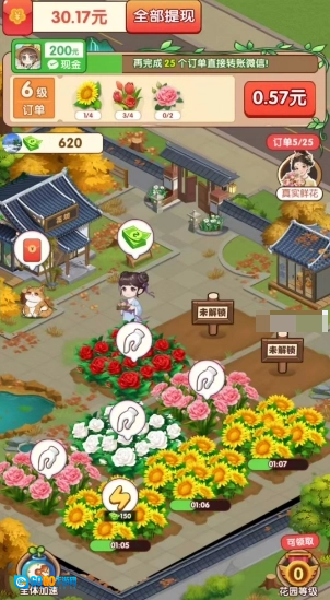 3、持续完成订单,我们就能解锁更多种类的花朵,体验更丰富有趣的种植乐趣。