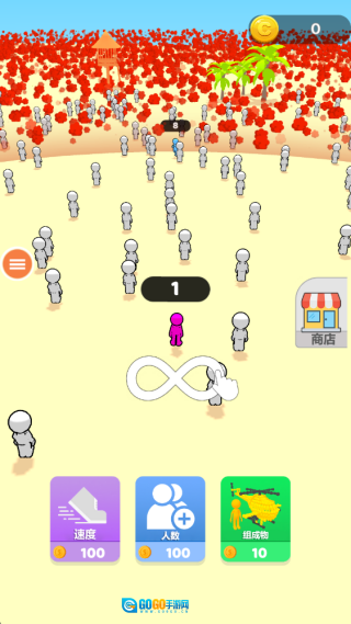 1. 控制角色移动,精准吞掉场景里的橡胶人;每成功吞噬一次,角色体型就会按比例变大,其移动速度和灵活性也会相应改变。