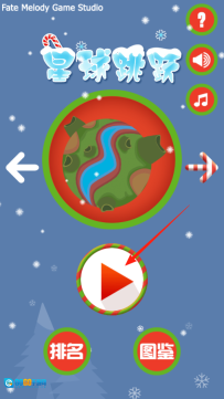 1、打开星球跳跃游戏的主界面后,要是想开启冒险之旅,直接点击中间那个红色的三角按钮就行。界面上还能查看排名和图鉴,但还是先投入游戏吧——操控角色在各个星球之间跳跃闯关,这才是最有意思的部分。